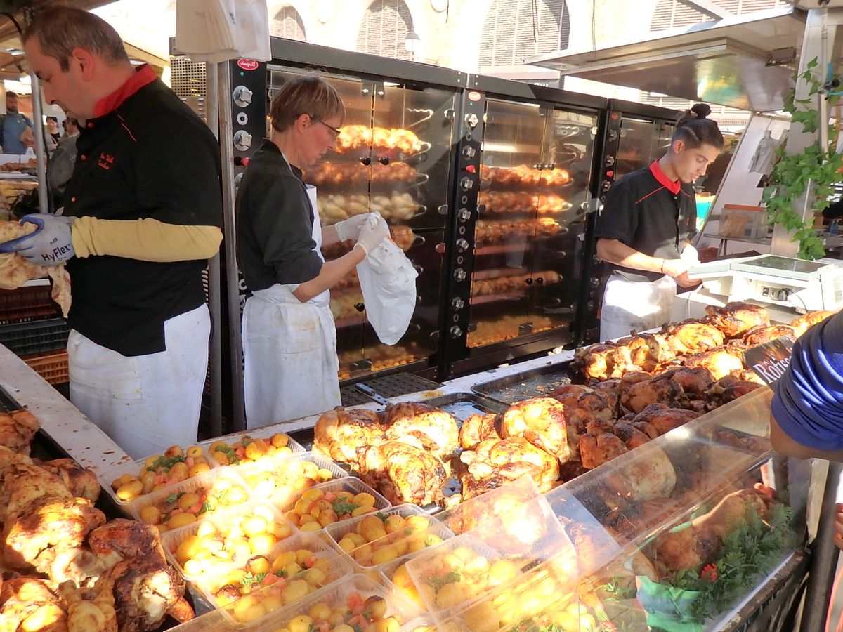 日曜日はここベルサイユの市場を訪ねます。思っていた以上に大規模で品質、品ぞろえもよい市場だと思いました。野菜・果物などの生鮮食料品が多く、大きな鳥をまるごと豪快に焼いているところもありました。お昼はここでお腹を満たすことができます。ツアー会社と提携しているらしい出店者がいくつかあり、試食ができたりします。ブルゴーニュ名産の塩を買いました。