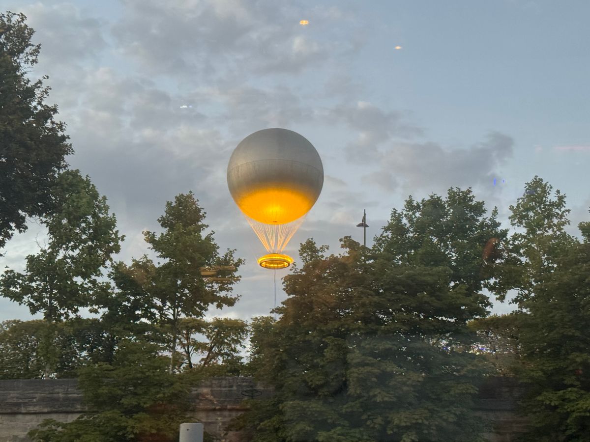 五輪の記念の気球が夜あがってライトアップされるというのを教えていただいたので、滞在中にそれを見ることもできました。