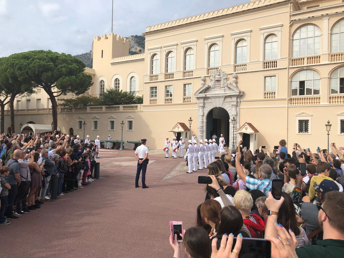 さらに少し走ってモナコへ。ここではまずカジノとホテルドパリの前で写真ストップ。続いてF1コースをたどって昼前に市庁舎へ。というのは11:55から衛兵の交代があるそうで、すでに人だかりが。見えないながらもとにかくスマホを高く掲げて写真を撮ろうとする人の列に参加。その後大聖堂のグレースケリーの墓など見てニースへ。
