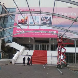 カンヌでは、レッドカーペットの準備中でした。華やかになるんだろうなと