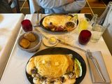 参加した日のコースの内容は、オムレツ、鶏肉のコンフィとパン、チーズケーキでした。