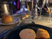 船内はとても綺麗で特別感がありました。 出港前から前菜がサーブされます。 出発してから食べ始めたのですが、サーブされたら食べ始めることをお勧めします。 その方が景色をゆっくり楽しむことができますし、私たちは最後慌ててデザートを食べることになりました。笑 また、フォトグラファーが写真を撮りに来ます。治安の悪いパリでは他人に写真を撮ってもらうことを控えていたのでとても良い記念になるので購入しました。た