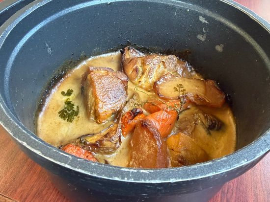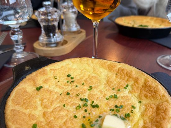 名物のふわふわオムレツ付き3コースランチをお召し上がりください。 名物のオムレツは巡礼者たちに振る舞われたとされたことが起源とされています。