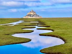 曲がりくねった水路沿いを散策し、モンサンミッシェルの絶景や羊たちの姿を楽しみます。