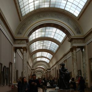 金曜日の午後のツアーに参加しました.(終了後は現地解散ですので,金曜日の夜間開館でゆっくり見られる作戦です.)ドノン翼2階はものすごく混雑していましたが,ガイドさんがピンポイントで見所を説明して下さいました.モナリザの前は近寄れないほどの人だかりでしたが,何分か待って段々近づき,最前列で見ることができました.モナリザはもう貸し出しはしないとのことですが,他のお目当ての絵が何枚か(何枚も!)イギリスに出張中で,あんな有名な絵を貸し出すのか?ルーブル太っ腹!と驚きました.