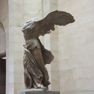 サモトラケのニケを見学後、左右に分かれる階段があり、少し座って見学している内に、ガイドさんの辻井さんが見えなくなりました。物凄く焦って、耳にイヤホンをしていたので、解説を聞きつつ、左の階段へ行き奥の部屋を探しまくりました。途中「slowly」と係員に怒られましたが、こちらは必死でした。何とかイヤホンからのお話で「~ギャラリー」と出たのですぐ近くの係員に「~ギャラリー??」と尋ねたら方向を指差してくれたので、ガイドさんにたどり着きました。はぐれました、とお伝えして、ガイドさんから「わたしのそばから離れないほうが良いです」とのお返事でした。