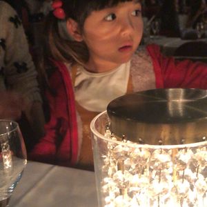 ラストはお客さん全員が小さなグラスに入ったシャンパンをもらい(子どもはジュース)、店員さんと一緒に歌いながらお互いに乾杯し合いました。