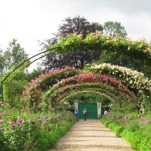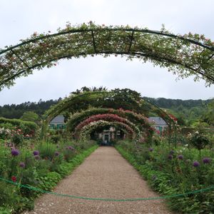 薔薇の花の咲く時期のジベルニーに行きたい!と6月のこの時期にしました。電車とバスで自分のペースで行こうか迷いましたが、ちょうど国鉄のストがあったので、確実に、そして早くに着くこのツアーにしました。結果正解でした。一般の入場が始まる9:30少し前に到着。団体用の入り口から入れば、ほとんど人けのないお庭に入ることができました。ちょうど昨晩の雨があがってみずみずしいお花たちが私たちを迎えてくれました。いたるところの花、花、花。シャッターを押す手が止まりません!モネの家や庭の見学所要時間など事前にガイドさんから的確に教えていただいたので回りやすかったです。50分ほどで家+庭を周り、残りの40分でモネのお墓のある教会(速足で10分強)にも、少し駆け足になりましたが、行きました。途中、風情のある民家やポピーの咲いてる畑?など見どころもあるのでおススメです。本音を言えばもう少しゆっくりしたかったのですが、オペラには1時ごろに帰って来られるので、午後からの観光も充実させることが出来ました。