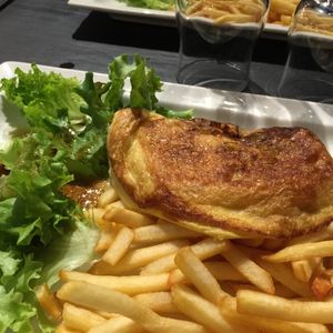 昼食はモンサンミッシェル対岸のレストランでオムレツランチを食べました。オムレツ、パン、フライドポテト、アップルパイでボリュームは十分でした。オムレツは噂通りの薄味でケチャップが用意してありました。