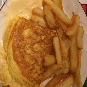 モンサンミッシェル名物のオムレツはふわっふわで、味付けは塩のみでしたが、物足りない人には店員さんがケチャップを持ってきてくれました。