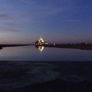 日の入りからはあっという間でした。モンサンミッシェル前の橋では、暗闇に浮かぶモンサンミッシェル海に映るモンサンミッシェルのコラボレーションが本当に素敵でした!