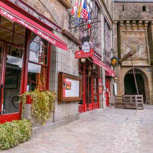 モンサンミッシェルに着いてはじめにランチをいただきました。オーダーが日本語でスムーズにでき、利用してよかったと思いました。また、そこで食べたオムレツは忘れられないくらい美味しかったです!ランチのあと、シャトルバスに乗ってモンサンミッシェル島へ向かいました。曇り時々雨という天候だったこともあり、風が強くとても寒かったです。もっと防寒をしっかりして行けば良かったと思いました。