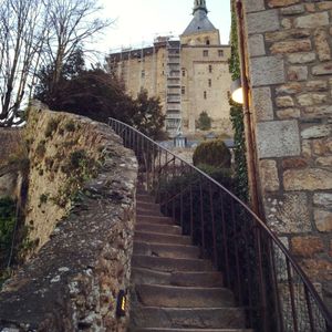 【モンサンミッシェル】圧倒されるというのでしょうか…バスが近づくにつれその偉大さを感じ神秘的な雰囲気でいっぱいでした!ここでは十分な時間が確保されており自分たちのペースで回れました。オーディオガイドで修道院を見て回ると、よりモンサンミッシェルの歴史を知ることができ感慨深かったです。ガイドさんがおっしゃるにはこの時期はオフシーズンなので観光客も少なくお土産屋さんもほぼ閉まっているとのことでしたが不自由はなかったです。有名なお土産も事前の車内で教えて下さり親切すぎます‼︎