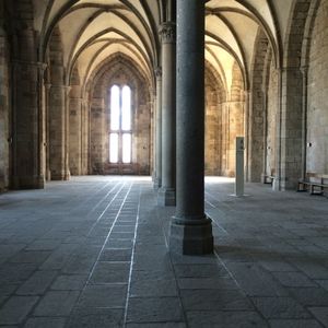 モンサンミッシェルは、入り口こそ原宿みたいですが、中は修道士のストイックな生活をリアルに感じられる、陰影に富んだ建物です。柱が太く立ち並ぶ部屋、今はがらんとしたかつての食堂、、ゆっくり時間をとって見てください。屋根のセントミッシェルが本当に格好いい。
