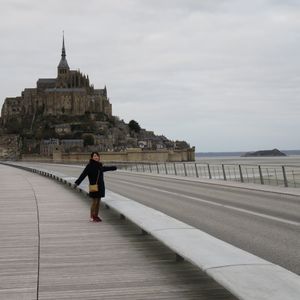 モンサンミッシェルはすごく遠かったですが、快適なバスで連れて行ってもらえたので苦に感じませんでした。途中ノルマンディー村も立ち寄ることができて、かわいらしい村で過ごせたひと時もとても楽しかったです。またガイドさんが写真をたくさん撮ってくれたりととても親切にしていただきました。ランチで大きなオムレツをいただき、味はともかく良い経験になりました。バスから降りてモンサンミッシェルまで2キロの道のりがありましたが、モンサンミッシェルをより楽しみたくてシャトルバスを使用せずに往復徒歩で移動しました。崖の上にあるモンサンミッシェルは遠くから見ても近くから見ても素晴らしく、行けて良かったととても感じました。