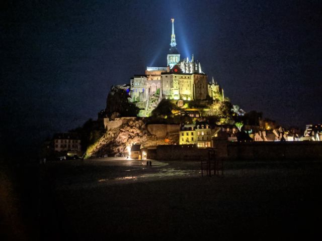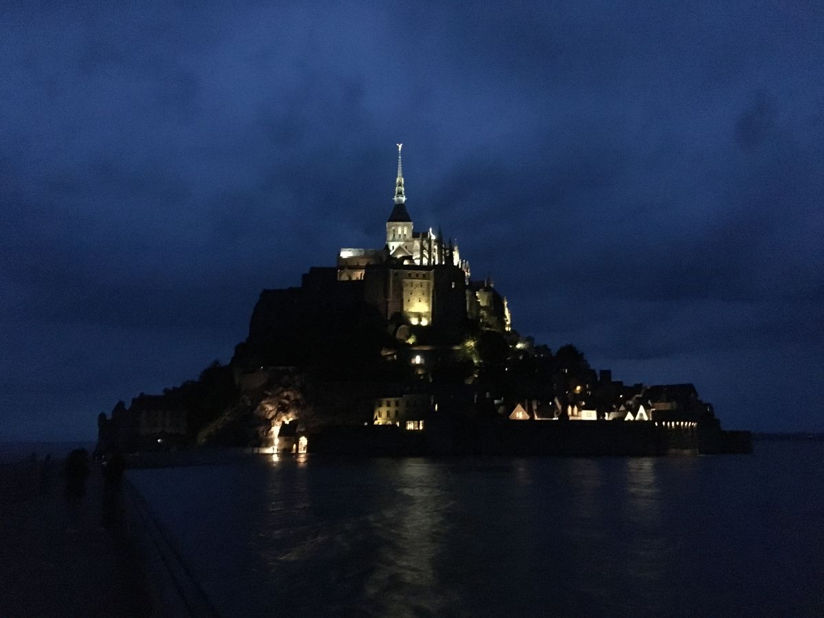 やはり夜のモン・サン・ミッシェルはきれいでおすすめです。また、周囲に明かりがほぼないため、星がかなりきれいにみえました。日本で星で有名な場所もいくつかいきましたが、それに匹敵あるいは凌駕するくらいの星で、天気がよければ星も期待できます。