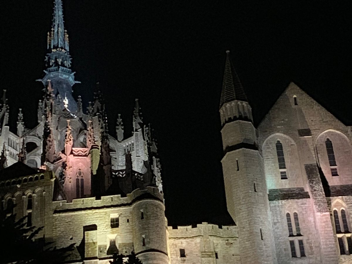 このツアーの催行会社のEmiトラベルのバスが2台、他にJTBのバスもMyBusのバスも見かけたので、日本人だけでも相当の人数が同じくらいの時間に到着して、何をするにも大混雑だったのではないでしょうか。宿泊の私たちはホテルで休憩してから動き出しました。写真を撮りながらゆっくり島まで歩き、日帰りの団体客の波が引いてから土産物屋を見てまわりました。一旦ホテルに戻って仮眠し、夜にシャトルバスで再訪すると、ライトアップされたモンサンミッシェルがとても綺麗で、写真を沢山撮りました。翌日に修道院にお邪魔しましたが、聖母被昇天祭という祝日だったからか、ミサに立ち会わせていただくことができ、思いがけない静謐な雰囲気に感動しました。