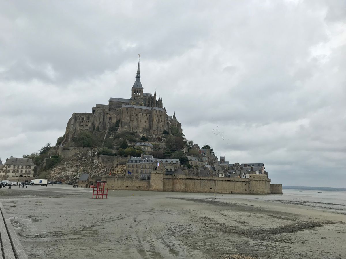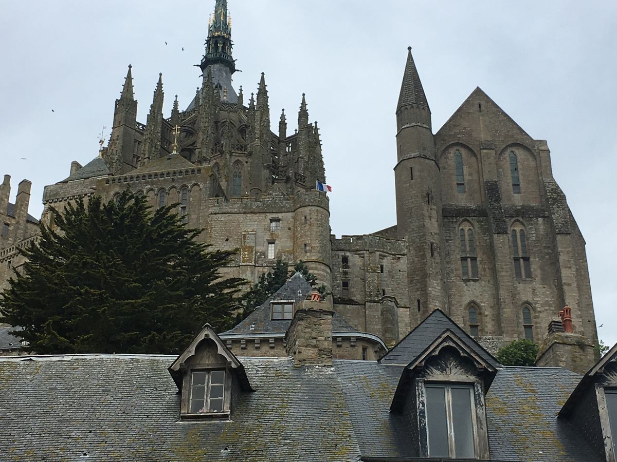 1泊2日のガイド付きツアーでしたが、初日は強風と雨。修道院内部のツアー中にもビュービュー、ガタガタとすさまじい音が鳴り響く中、見て回ることになりました。ここで修業をした修道士たちの苦労が忍ばれ、思わぬ収穫でした。大天使ミカエルの思し召しか、翌日は天気が回復し、晴れた穏やかなモンサンミシェルを見る事が出来ました。そして、帰りのバスが現地を離れた直後、雲の切れ間から日が差し、なんと虹が出てくるという奇跡のシーンをバスの中から見る事も出来ました。やはり一泊してゆっくり見ることが出来る一泊ツアーがお勧めです。雨の日があっても翌日に今回の様に天気が回復する可能性も出てくるかなと思います。