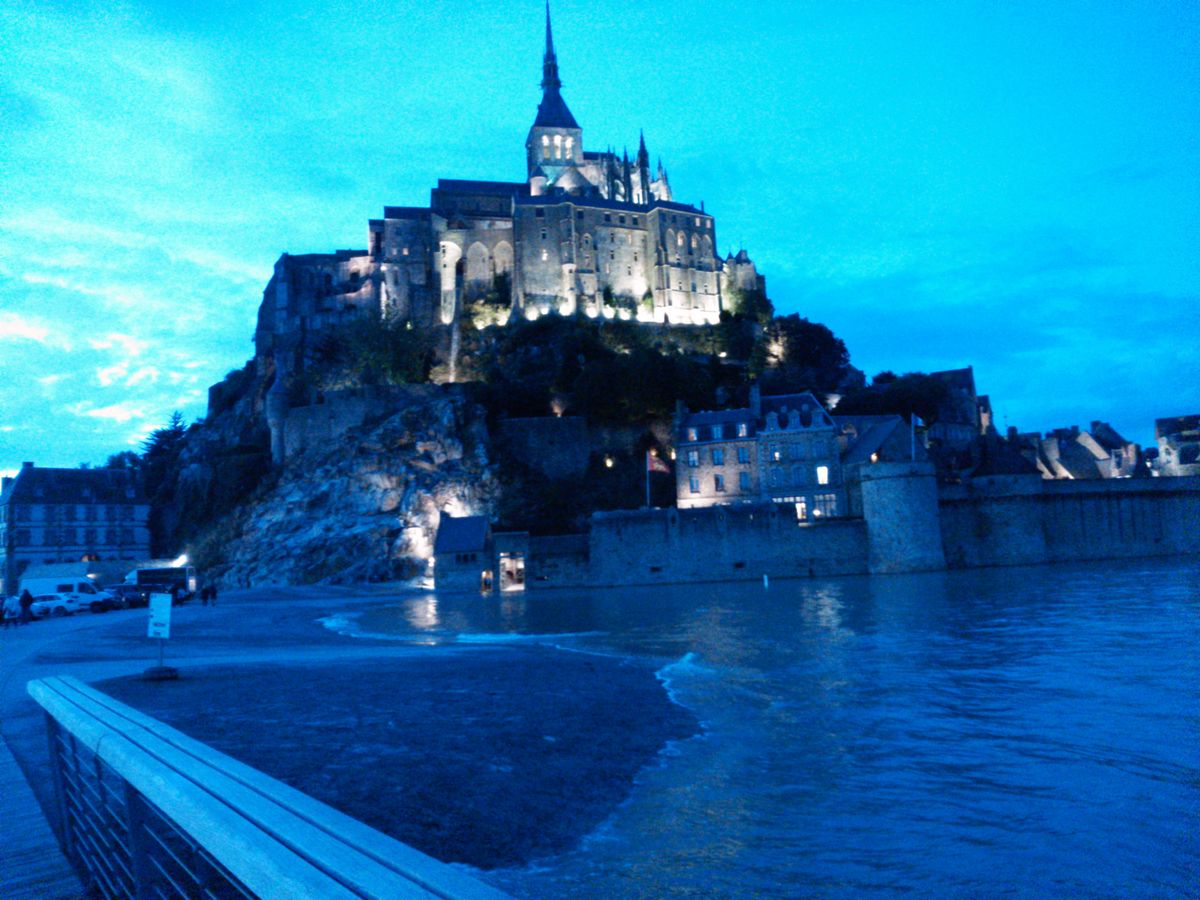 私達の行った時期は大潮でしたので、満潮のモンサンミッシェル、干潮のモンサンミッシェルを、そして、1泊することで、照明を浴びた夜景も堪能できました。