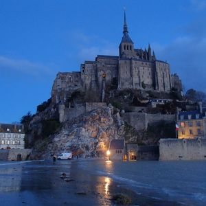 暗闇の中にボーッと浮かび上がるモンサンミッシェルは凄く幻想的で宿泊ツアーの特権です。