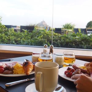 朝、ホテルのレストランでモンサンミッシェルを眺めながら食べる朝食は最高でした!お天気が心配でしたが、2日目は晴れたので太陽を浴びたモンサンミッシェルがまた素敵でした。観光客で混む前にモンサンミッシェルに行ったので、写真も撮りやすく人の少ないモンサンミッシェル内を探検できてとっても楽しかったです!!天気に左右されますが、行くなら泊まりがオススメです。
