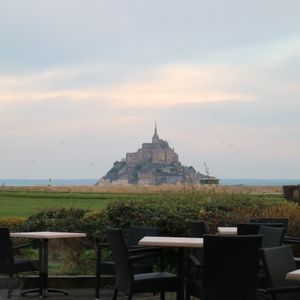 お泊まり頂きましたルレ・サンミッシェルはモンサンミッシェルの対岸に位置しており、どの部屋の窓も、向きはモンサンミッシェル修道院の方向にはなっているようですが、時には木々等が障害でご期待に添えい場合が生じます。