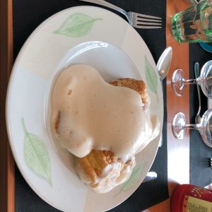 オムレツはただの泡で、美味しくはありませんでしたが、一応、ここの名物ということで、一度は体験してもよいと思います。その他のフライドポテト、リンゴのタルト、一緒に頼んだシードルが美味しかったです。