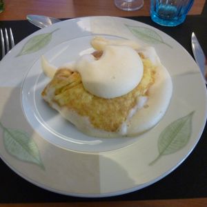 現地は昼過ぎに到着したと思いますが、直ぐにランチでオムレツとポテトとパンと