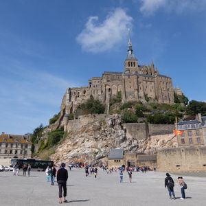 ノルマンディの田舎は、おいしいパン屋、チョコレート屋お店もいろいろあり、買い物してたら時間が無くなり、田舎町の有名な場所まで行けませんでした。モンサンミッシェルは、天気がとてもよかったので、くっきりと島が浮かび上がるような風景で、とてもきれいでした。冬の時は雲っていたので、今回は最高に良かったです。バスの中で、ガイドさんから、モンサンミッシェル観光の説明を聞いて家族で廻りましたが、時間があっという間に集合時間になり、買い物もする時間がなかったです。工事中のところもありましたが、中もいろいろな時代を感じることができ素敵なところでした。途中、上位置から海やモンサンミッシェルの先端が見える場所で休憩しながら写真を撮り、カモメがすぐ近くまで来たり、楽しかった。お昼の食事は、オムレツには各テーブルにケャップがあり、かけて食べられたので、美味しかった。ゆうゆうプランでよかったのは、席が前だったこと。勘違いは飲み物付きと書いてあったのが、お昼のドリンクではなくペットボトルの水のことだったこと。ガイドさんは日本人の方で、このツアー以外にも、旅行のこととかいろいろ相談にのってくれて助かりました。バスの中ですべての方に声をかけていました。夏休みだったため、参加者も多くドライブインでトイレ待ちだけで、時間になり、何も買えない。もう少し、時間に余裕があり、買い物が出来きたらよかったのにな・・・