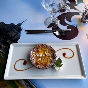オプションでつけた夕食は、夕焼けに照らされるモンサンミッシェルを眺めながらのお食事で、本当に気持ちよかったです。オムレツはもちろん、その後に出てくる温野菜やチキン、りんごタルトまでとても満足度の高いコースでした。
