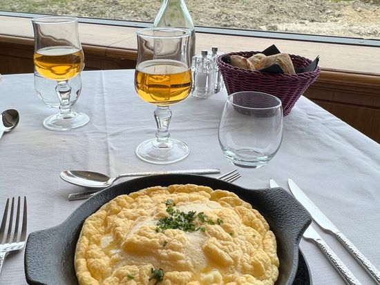 島内のラメールプラール姉妹店でのランチを付けましたが、窓際の眺めのいいお席で良かったです。ただ、最初のオムレツはすぐに来たのですが、その後メインが全然来なくて、30分待ってスタッフにまだ来てないと、更に40分経ったのでどーゆーこと?と伝えましたが、今来るからとしか言わず、45分も経ったので散策の時間なくなるし、もう待てないから行きますと帰ろうとしたらデザートと一緒にメインを持ってきたので言い合いになりました(笑)。ちょっとイヤな思い出がオマケにつきました。