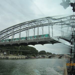 午後6時15分をチェックイン目標にして、最寄駅のMetro6のビル・アケム(Bir-Hakeim)駅には、午後5時50分ごろ到着しました。前日に事前確認していたので余裕でチャックイン出来ると思っていました。ところが、駅は、大勢の人で溢れ、駅を出た処でサキュリティチェックの警官が進行を制限し、事前に貰っていた「セキュリティパス」を見せても”此処は通せない、他に行け”と言われ、通してくれる他のセキュリティ検問を探し始めた。7か所を過ぎても通過出来ない、乗船締切の時間は迫ってくる、午後7時を過ぎてもセキュリティ検問を通過出来ない。警官と押し問答が続く。警官とのやり取りで一番印象的だった会話は、警官:”このセキュリティパスでは、此処は通せない。”、小生:”では、どうすれば良い?”、警官:”タクシーに乗れ、タクシーは、パリ市内何処でも連れて行ってくれる”、小生:”この状況でタクシーが此処を通れるか。ダメだろう”、荒い言葉を残し、次の検問場所を探す。7時15分過ぎ、ようやく、一つの検問を通過、まだまだ乗船指定の船着き場-Pier n'7には遠い。群衆をかき分け、進む。7時25分過ぎ、最後のセキュリティチェックを通過し、ようやく-Pier n'7に到着出来た。乗船手続きは-Pier n'7だったが船は5番のポートだと言うので、チケット(内容は、Bateau:CRISTAL、Porton:S、Service:Soir、Zone:Premier、Table:104)を受け取り、5番ポートに移り・乗船、案内された席に着いた。席の位置は、「最前席」では無かった。説明の為、船の構造説明用語を使います。船の先端部分は、船首、真ん中部分は、胴体、そして、船の後ろの部分は、船尾と言います。案内された席は、胴体の前の部分で、且つ、内側席でした。予約完了のメールには、「最前席」と記入されていたので、自分の座る席は、「船首の部分で、窓側」と思っていました。”がっかり”でした。自分の思っていた席と実際の席が異なるので、主催者に話をと思いましたが止めました。何故ならば、船首部分の席は、他の人が座っていて、既に食事・お酒が提供されディナーが始まっています。此処で、私の主張を通すには、既に座っている人の一つのテーブルを明け渡して貰わなければなりません。三者(主催者・既に座っている人・私)で、一悶着が起こり、其の場の雰囲気を台無しにします。