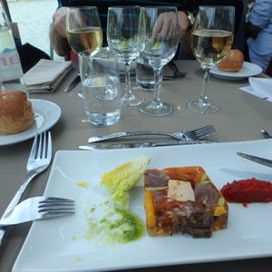 分厚いフォアグラの前菜から始まったコースは、サーモン、メーンの子羊肉、チーズ、デザートへと続く。気持ちも味覚もふくふくとした時が流れる。船着き場にたどり着くまでの身勝手な人たちのせいで疲れきった気持ちが癒されていく。