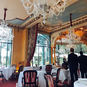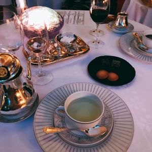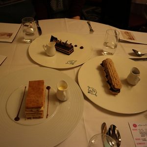 トライバーさんが5分前には来てくださり、とても好感のもてる方でした。 レストランはスタッフも内装も食器・丁度もゴージャスで文句ありません。 地元フランス人の方も多く、日本人は私達以外に一組でしたが、観光客ではなさそうでした。 量は少ないと聞いていたのですが、大食いの私でも半分は残しました。 デザートも多くて半分食べられませんでした。