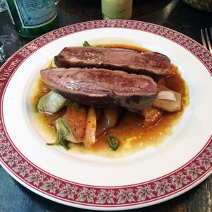メインは鴨の料理を選択。(日本ではこんな大きな鴨肉を食べる機会がないので、じっくり味わって美味しくいただきました)