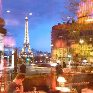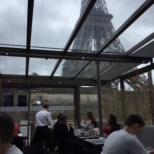 パリ1日目に予約しました。エッフェル塔が見えるレストランで、21時からの照明をきれいに見ることができました。食事の途中、他の客のたばこの煙が気になったので、席を変えてくれるように頼んだ際も、快く席を準備してくれました。料理は、標準です。景色を優先する店です。