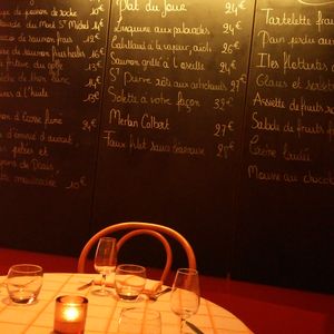 エッフェル塔の近くのホテルに宿泊したので、近くて一人で気軽に入れるお店を、と思いこちらを予約しました。レストランやブラッスリーだと、コース料理の量が多く、食べきれない恐れがあるので、ビストロにしました。8:00に予約を入れ、当日は雨が降ってしまい、メトロのマルマ・マルソー駅の近くでしたが、ホテルからタクシーを利用しました。途中が渋滞で8:10頃になったのですが、感じのいい、女性の店員さんが待ってくれていました。
