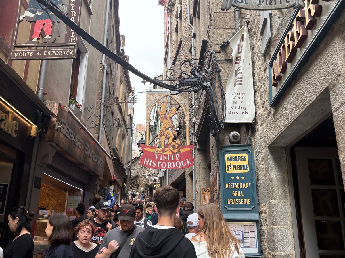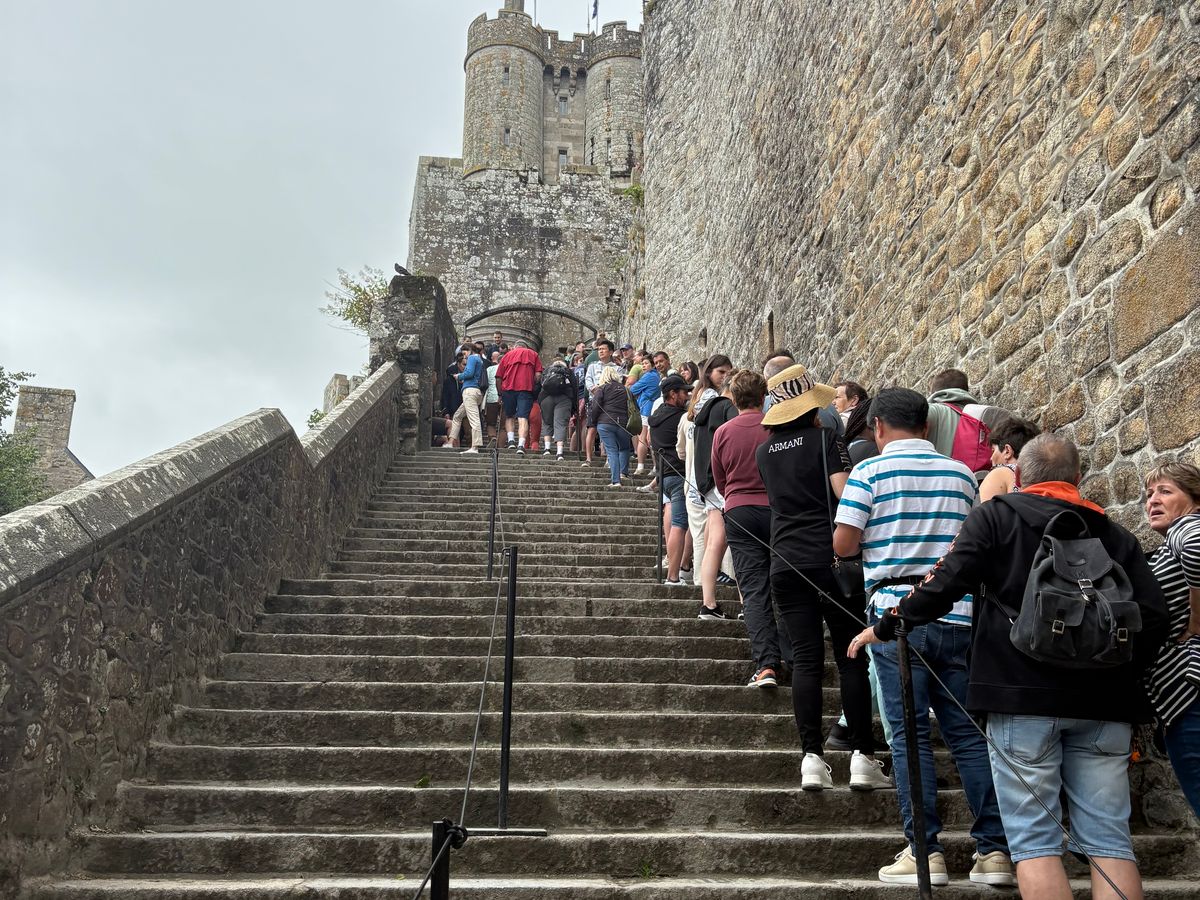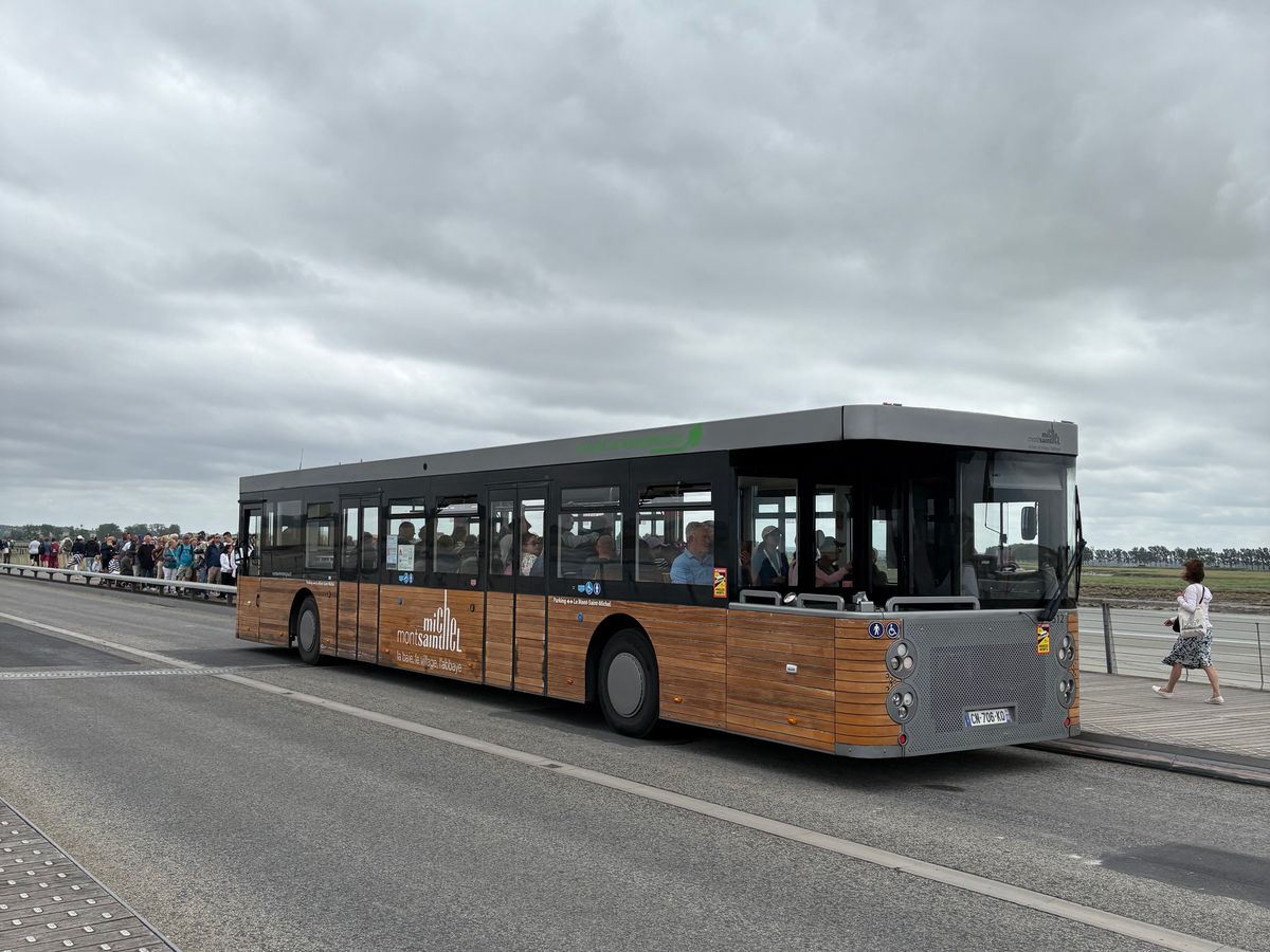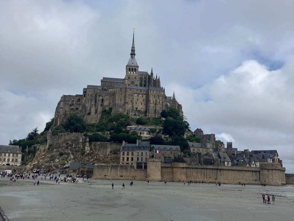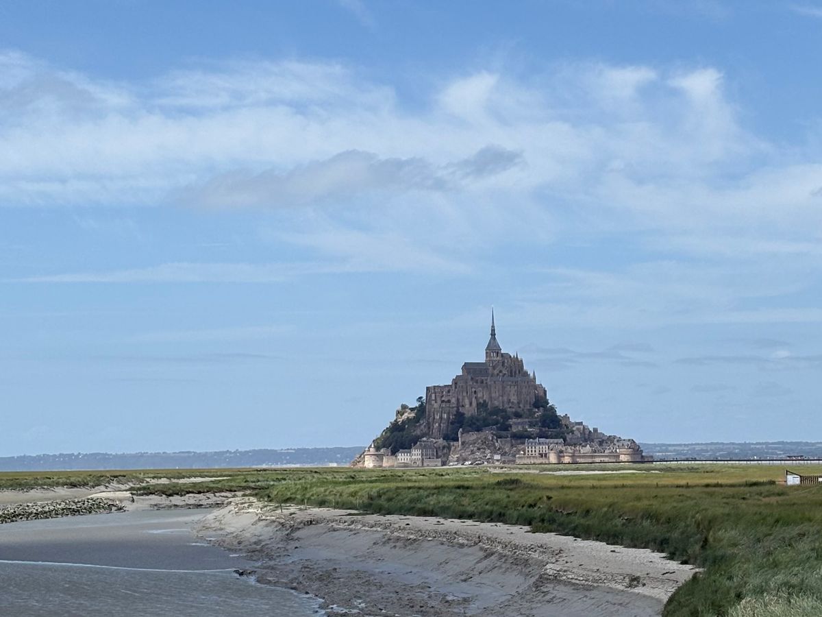 日本人ガイドさんはフランスの歴史や、お土産のことをたくさん教えてくれて、バスの中も楽しかったです😊ただ、往路に交通事故があり、バスが止まっている時間も長くノロノロで、予定時間よりかなり遅く着きました。現地滞在時間が12時45分から16時40分までとなり、これにバス停からモン・サン・ミシェル入り口近くまでのシャトルバスの時間も含んだので、急げ急げ💨な感じで、もう少しゆっくりしたかったです💦