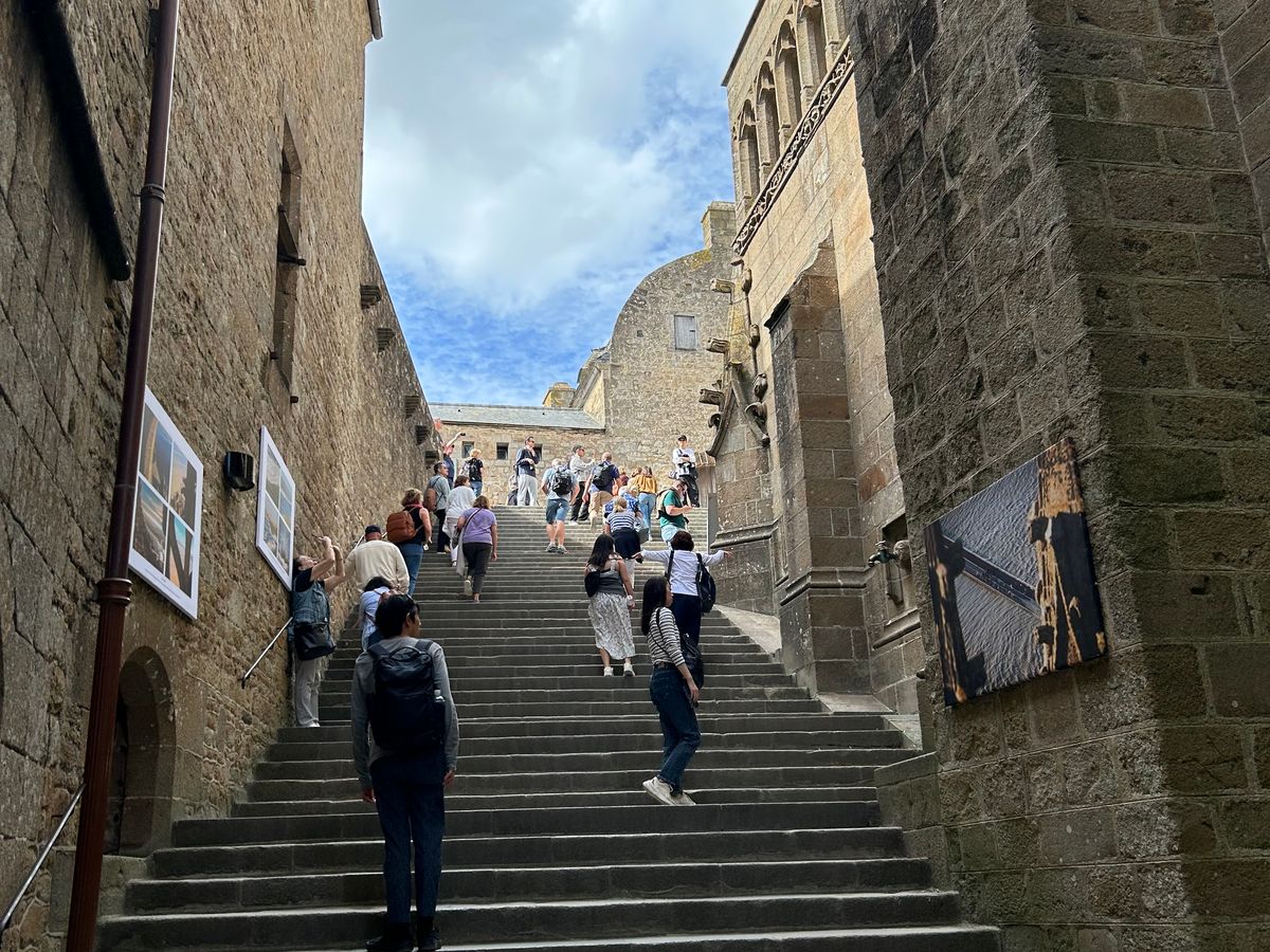 モン・サン・ミシェルは遠いので、片道4時間30分くらい、おまけにモン・サン・ミシェル内は人が多く、修道院へ行く道も、中も階段の連続です。