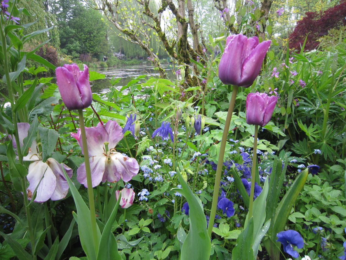 午前中にジヴェルニーにバスで向かいました。少し小ぶりの雨が降っていましたが、着いた頃には止んでいて、雨滴がついた草花たちがキレイに映えていました。ガイドさんはフランス人でしたが、とても流暢な日本語を話され、ポイントを掴んだ話し方でとても上手でした。