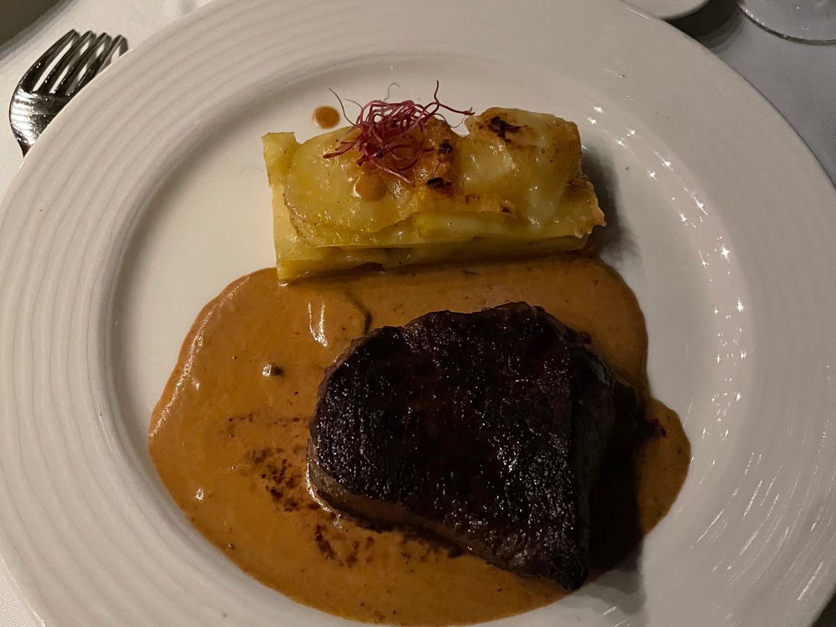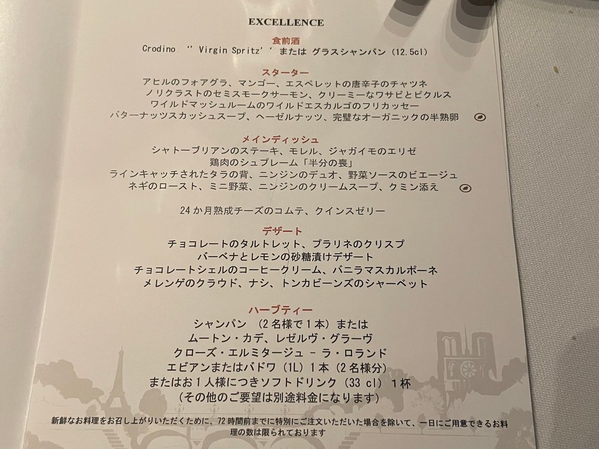 18:45に乗船、3月末はまだ、薄暮の状態で、ディナーの途中からエッフェル塔も点灯されました。今後の夏の時期は、乗船から夜景を楽しむのなら、後のコースを選択する方が良いでしょう。ディナーの飲み物、メインは、机の上のQRコードを読んでメニューが出るのでそこから選択してください。せきを選び場合は、ぜひ窓際の席を。