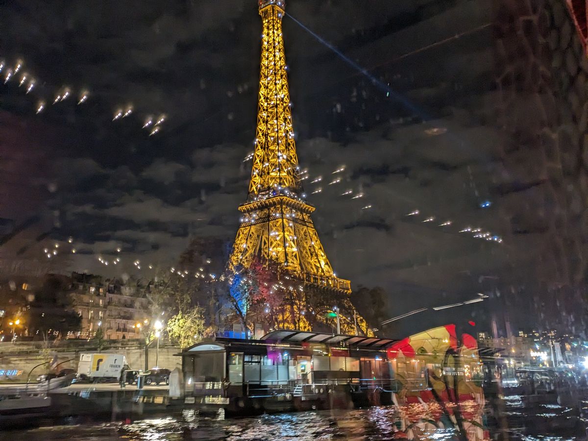 エッフェル塔の数分間のキラキラのライトアップが最高の位置で見られます。パリでの1番の思い出になること間違いないと思います。食事は期待してませんでしたが、ステーキは美味しかったです。ピアノ弾き語りの方のフランス語で歌う声が素敵ですし、アルコールが飲めない方用にジュースを出してくれたので、サービスも良かったです。船酔いは全くありません。