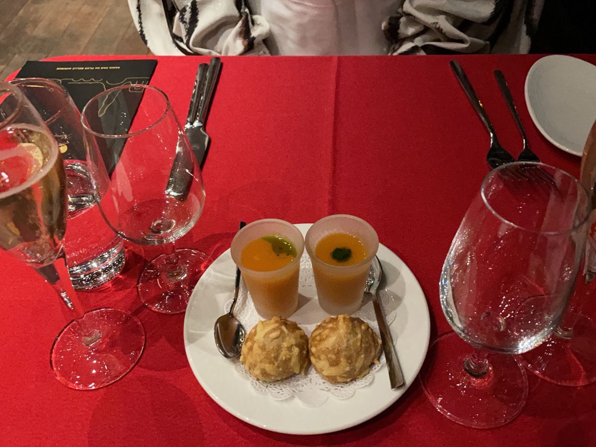食事の味は、大満足ではありませんでしたが、美しいエッフェル塔のシャンパンフラッシュを2回見ることができ、感激でした