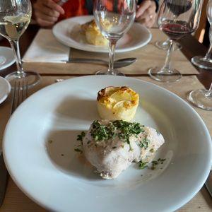 ランチはかわいい小さなお家にて。シンプルな味付けの鳥肉など、日本人にも合う優しい味。ワインは白も赤も飲み放題。席は知らない方と相席でした。