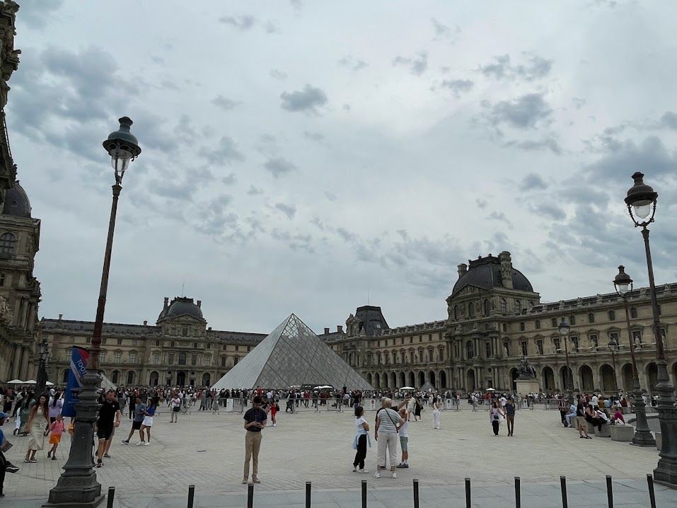 ルーブル美術館内は、先にDLしておいたルーブル美術館Appを利用。特別な思い入れがない限りそれで十分だと思う。私の絶対的おすすめは、朝イチ入場で、最初にドゥノン翼 1階のモナリザの間に行くこと!私たちは割とゆっくりモナリザを見学できたが、帰る頃にはあまりの人に大変な状況になっていた。