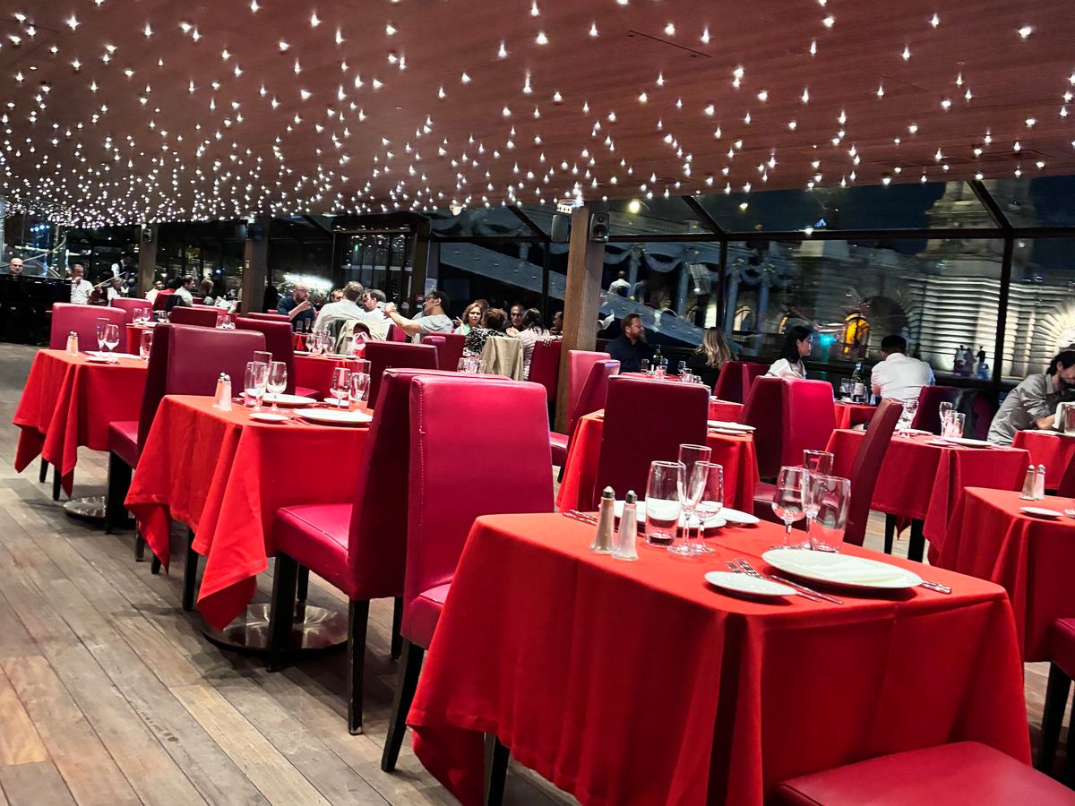 セーヌ川沿いの風景が映画の一部のようで、クルーズが始まる前からテンションが上がりました。窓際座席は良かったのですが、座席脇のガラスが割れていたのがかなり気になりました。お料理はとても美味しかったです。