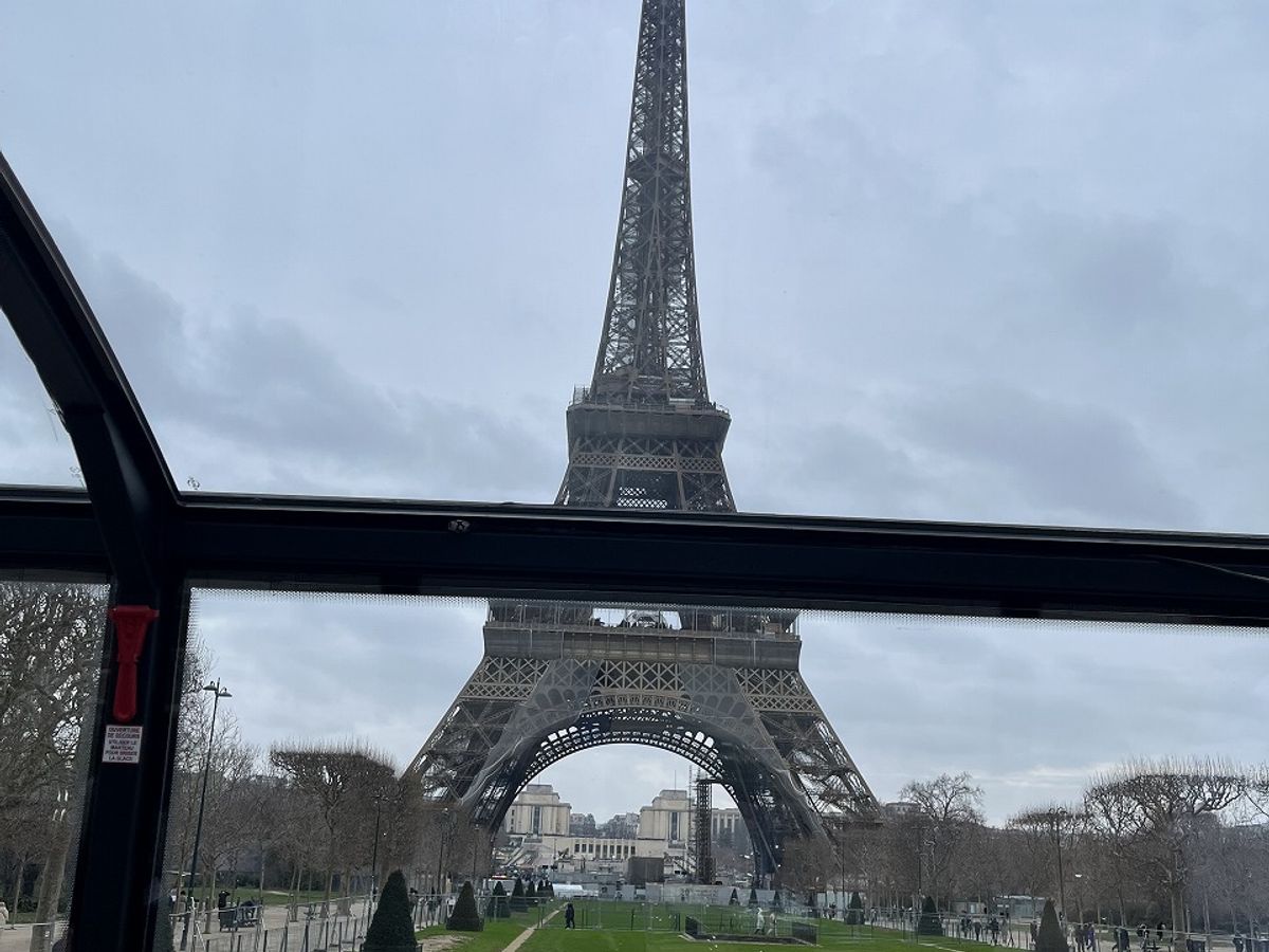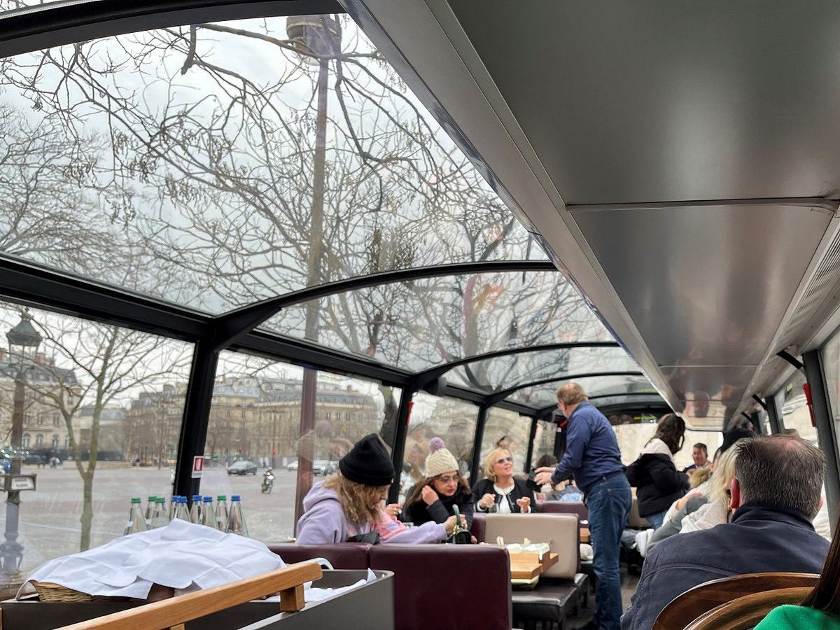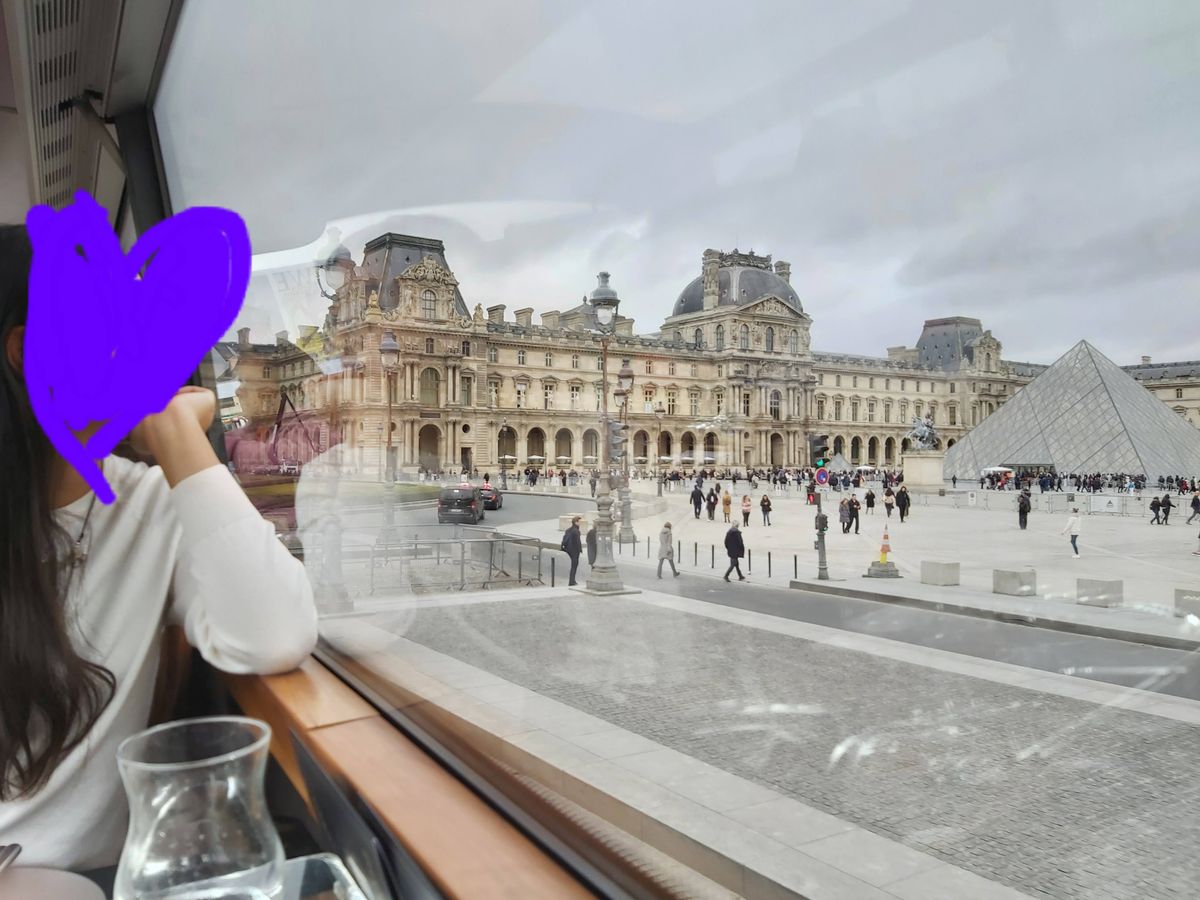 2月2日のランチツアーに参加。パリ到着の翌日、町全体を見渡したくて参加しました。とても寒くて雨も降りそうだったけど、バスの中は暖かくてバスの二階からパリの街中を眺めながらの2時間のバスツアーは最高でした。お手洗いも有り。