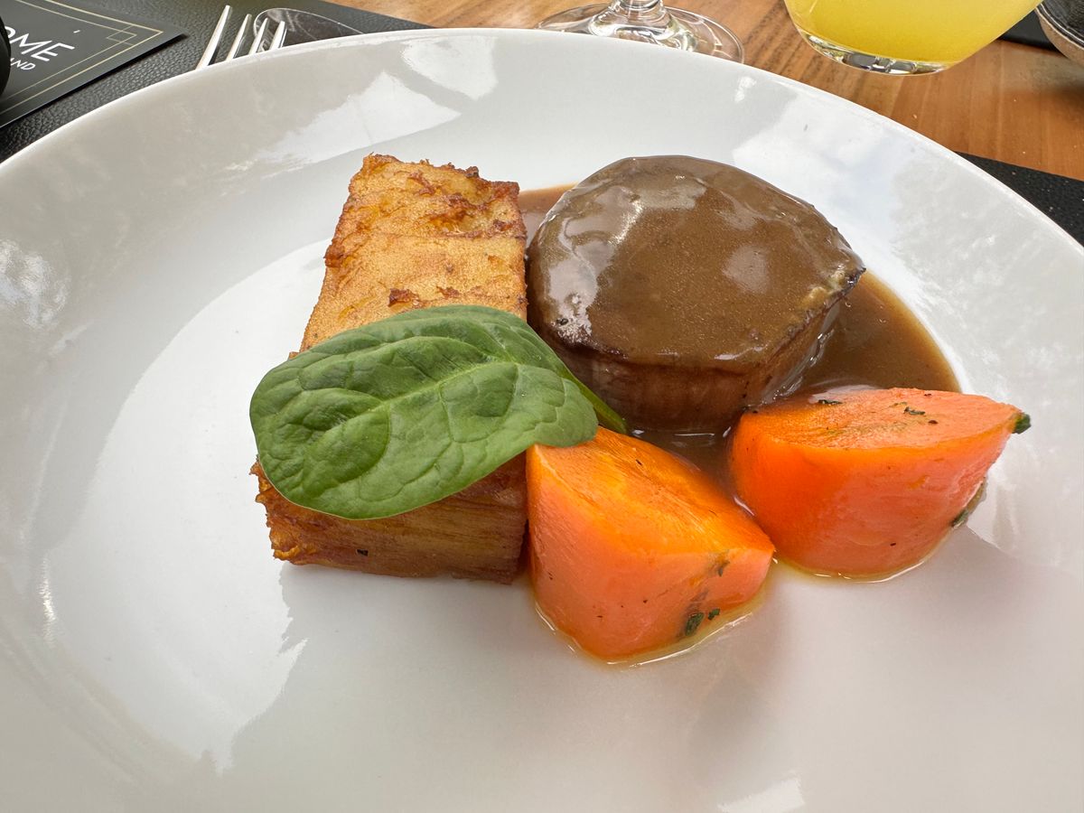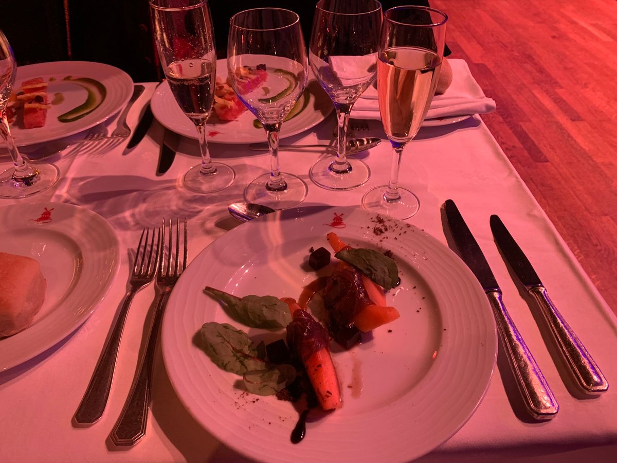 確かに全て窓際のテーブルに案内され、前菜、メインコース、デザートと選べるフレンチのフルコースが提供され、窓の外はライトアップされたパリの夜景が過ぎ去っていくので、観光のコンテンツとすると、充実感はあります。
