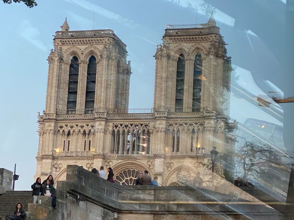 船内では歌がずっと歌われていて、修復中のノートルダム寺院を通るときは、アベマリアを歌ってくださり、グッと込み上げるものがありました。全員ではありませんが、割とドレスアップしていているのですが、クーラーが寒くて、店側には伝えたのですがダメでした。肩を出していたドレスの方も、ブラウス1枚の私も、結局コートを着てのディナーとなってしまい残念でした。