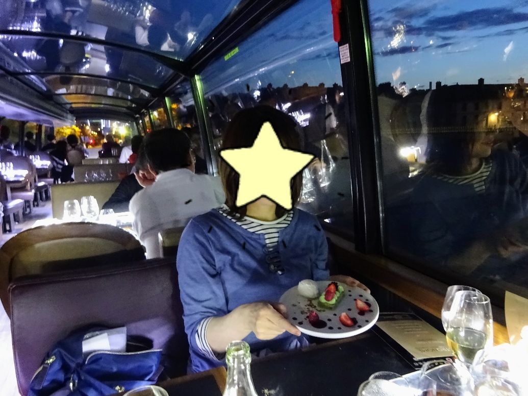 セーヌ川のクルーズは何種類もあるので、予算や時間など考えるのが良いと思います。私は二階席の食事無しクルーズは経験しているので、今回は結婚記念日を祝うためディナークルーズにしてみました。